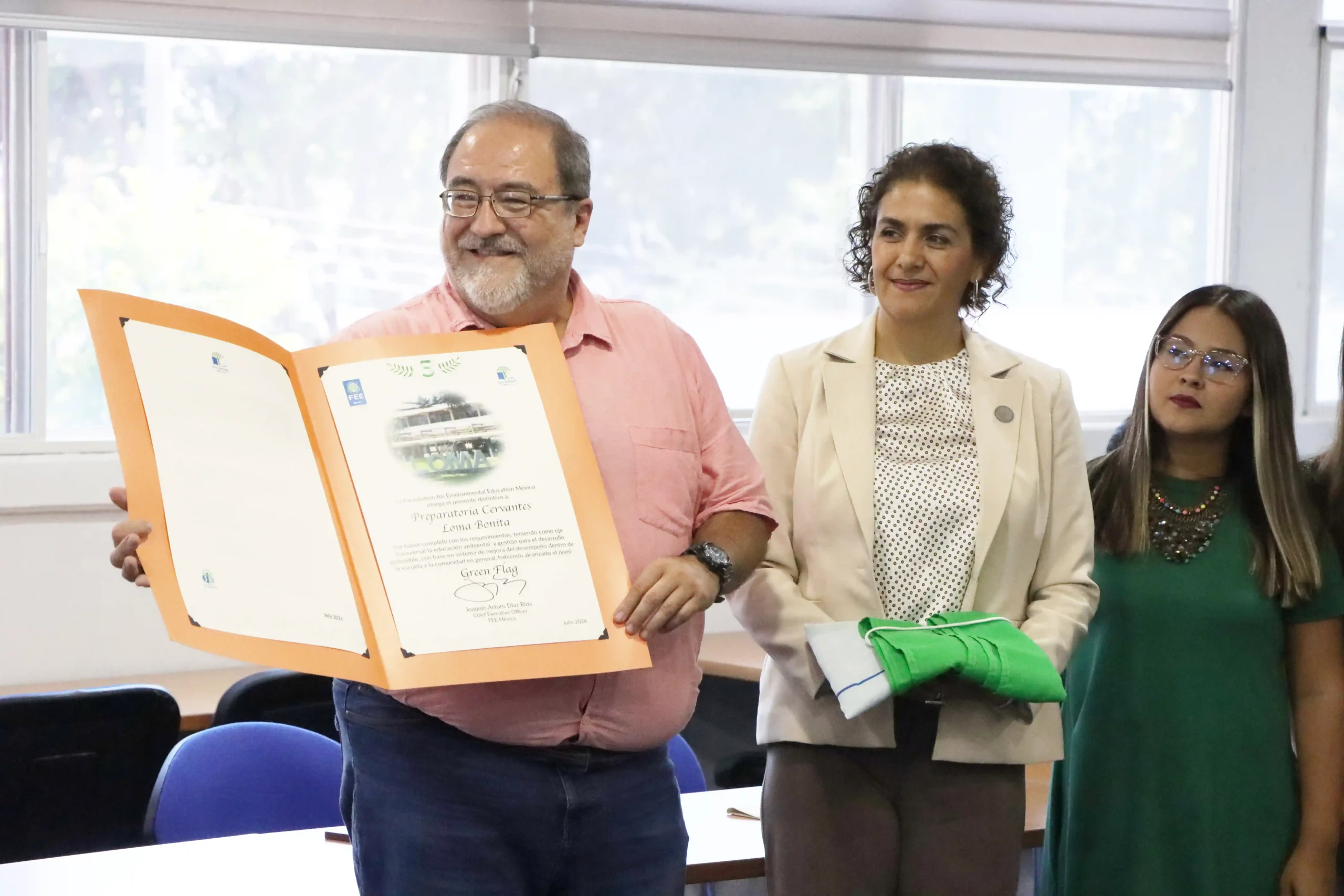Nuestra Preparatoria Cervantes Loma Bonita celebró la ceremonia de entrega del distintivo Green Flag, máximo reconocimiento del programa internacional Eco-Schools, promovido por la Fundación para la Educación Ambiental (FEE) y operado en México por FEE México. Este distintivo acredita a nuestra preparatoria como un centro educativo comprometido con la acción ambiental, la participación estudiantil y la mejora continua en sostenibilidad.